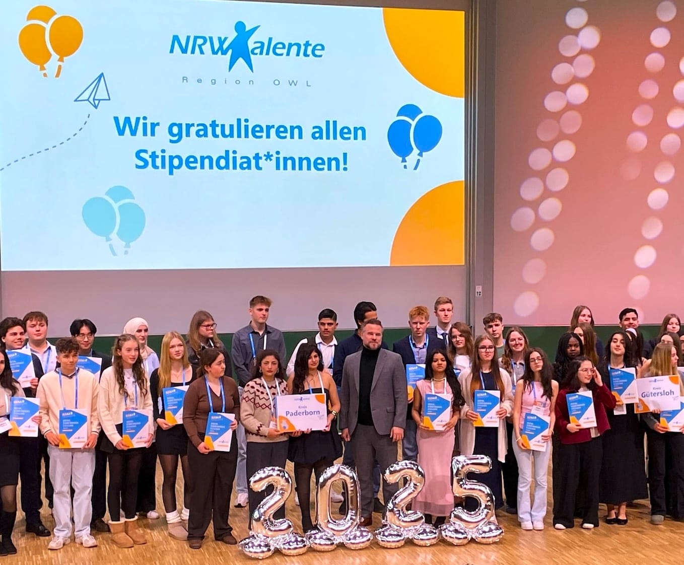 Sechzig neue Stipendiaten sind bei NRW-Talente OWL im Rahmen einer stimmungsvollen Feier an der Universität Paderborn aufgenommen worden. Unter ihnen zwei Schülerinnen, Zahide Celebi aus der Q1 und Sarah Peveling aus der 9. Klasse der VZG. Begleitet wurden sie von ihren Familien und ihren Lehrer:innen Ruth Buckebrede, Philip Schröder-Bruns und Melanie Schulte, die sie mit...Read More