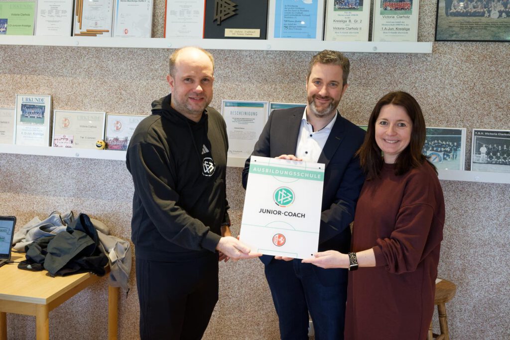 Bürgermeister Marco Diethelm nahm die Bedeutung des Zertifikats in den Blick, den die Jugendlichen bald bekommen werden: „Coach kann sich heute wohl jeder nennen, aber „DFB Junior Coach“ ist ein geschützter Begriff – wer das erreicht hat, zeigt damit seine Qualifikation. Anderen Menschen etwas beizubringen, ist eine große Nummer, darauf könnt ihr stolz sein.“