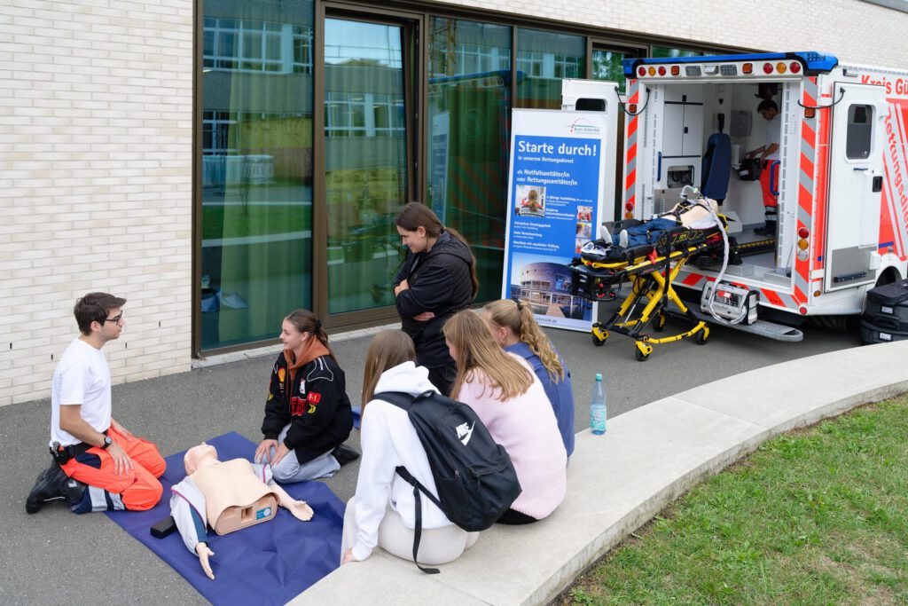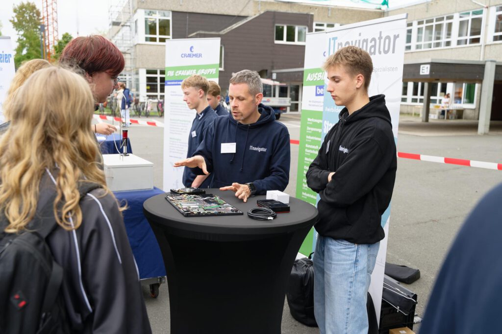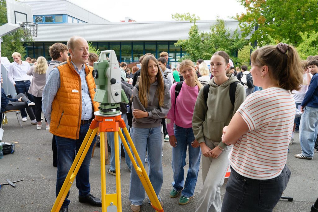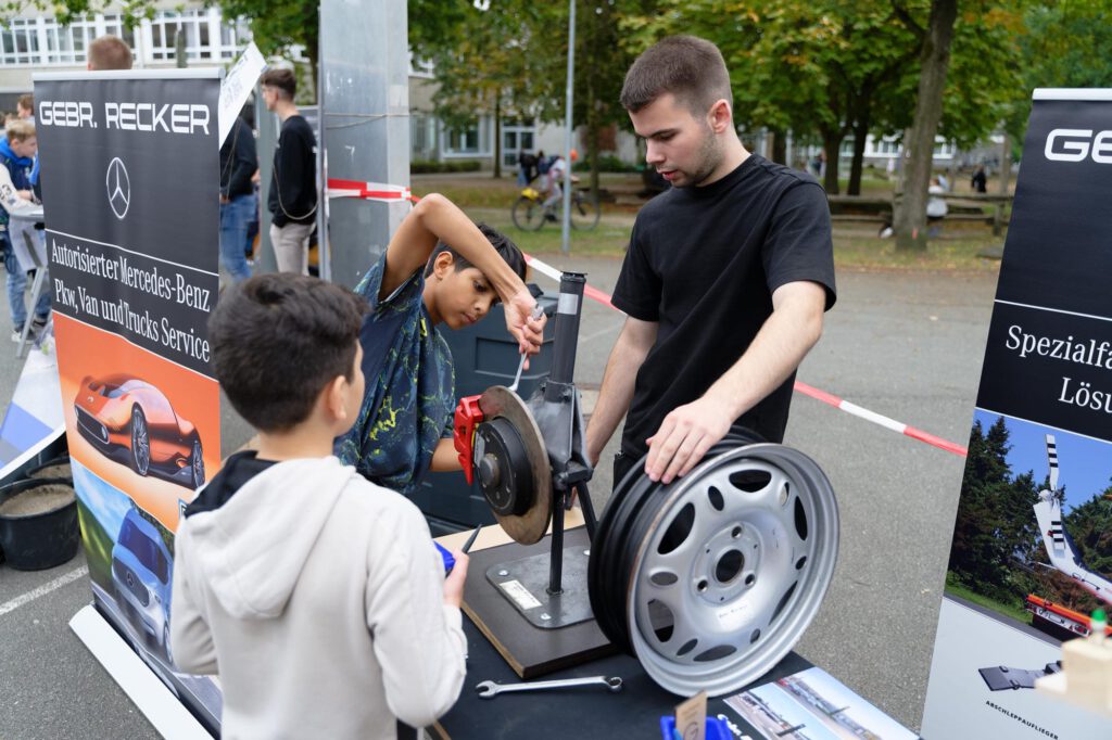 Als Erste besuchten die Jahrgänge 8 und 9 die Firmen. Für die 9er drehte sich in der zurückliegenden Woche sowieso schon alles um Berufe, denn sie bereiteten sich für die anstehenden Schulpraktika vor. Und hier konnten sie noch mehr Eindrücke sammeln – an der einen oder anderen Stelle war bei der Schulhofaktion sogar die Firma vertreten, bei der es in der nächsten Woche ins Praktikum geht.