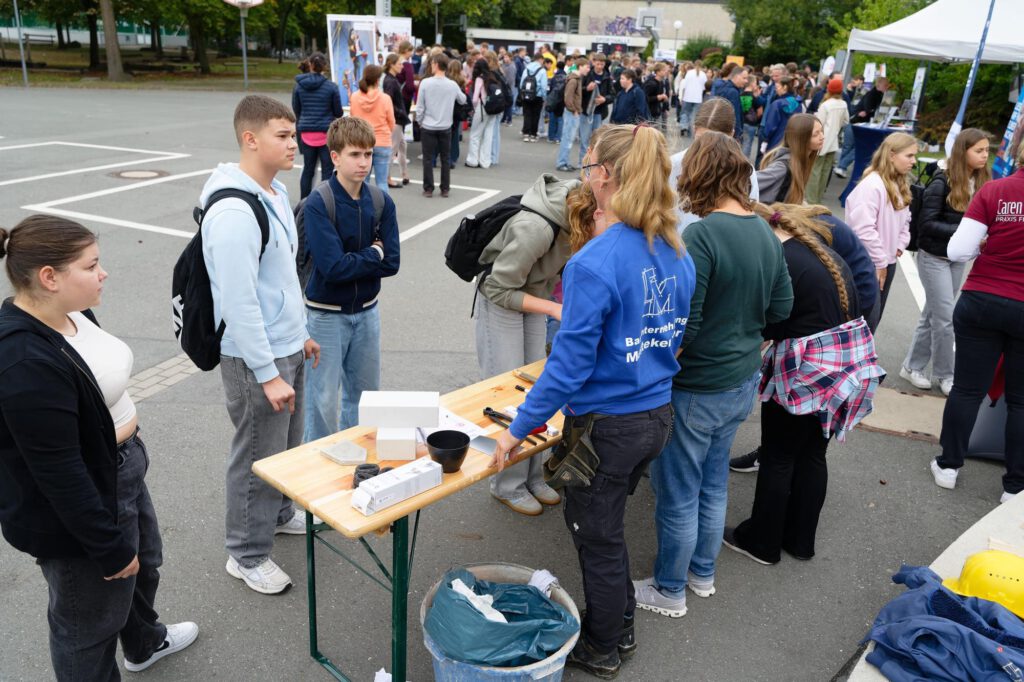 In der Mittagspause durfte auch die Unterstufe an die Stände und bei den Fünft- bis Siebtklässler war das Interesse auch schon groß, obwohl die Berufswahl noch Zeit hat. Besonders beliebt waren hier die Firmen, die handwerkliche Mitmachangebote hatten. Hier konnten die Jüngeren ihr Geschick beweisen oder Werkzeuge, Materialien und Tätigkeiten kennenlernen, die sie noch nicht kannten.