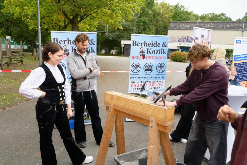 (hc woe) Zum dritten Mal fand am 18. September an der Herzebrocker Von-Zumbusch-Gesamtschule die jährliche Schulhofaktion zur Berufsorientierung statt, bei der Schülerinnen aller Jahrgangsstufen zahlreiche heimische Firmen und Einrichtungen und viele Ausbildungsberufe kennenlernen konnten. Organisiert wird diese Aktion von der IHK, der Kreishandwerkerschaft Gütersloh-Bielefeld, der Arbeitsagentur, der Kommunalen Koordinierungsstelle Übergang Schule-Beruf des Kreises Gütersloh und das Berufsorientierungsteam Holger Dunker, Melanie Tomasiewicz und Eduard Latosik der Von-Zumbusch-Gesamtschule.