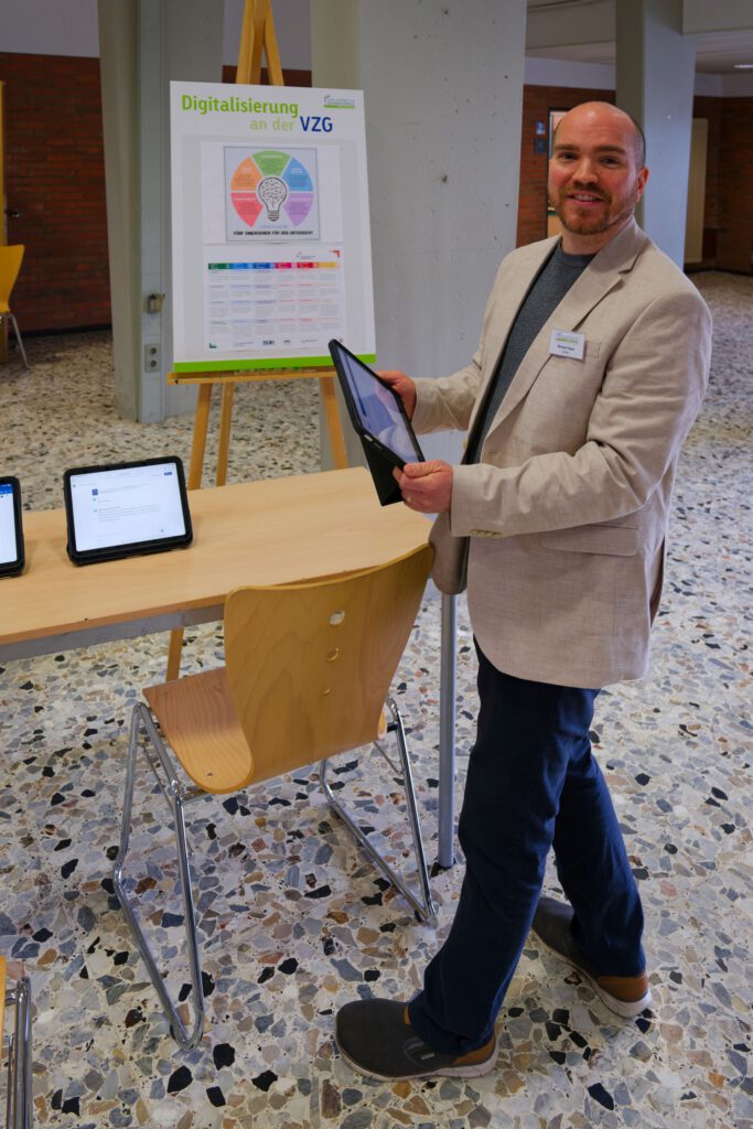 “Zum Schulleben an der VZG gehört neben den Fächern natürlich eine ganze Menge mehr”, so Schulleiter Sebastian Menke am Rande der Gespräche im eigens eingerichteten Café, “Neben unseren Förderverein sind das die Schulsozialarbeit, der Bereich Inklusion, die Berufsorientierung, der Schulsanitätsdienst, das Beratungsteam, unser Sprachcafé und Weiteres.“
