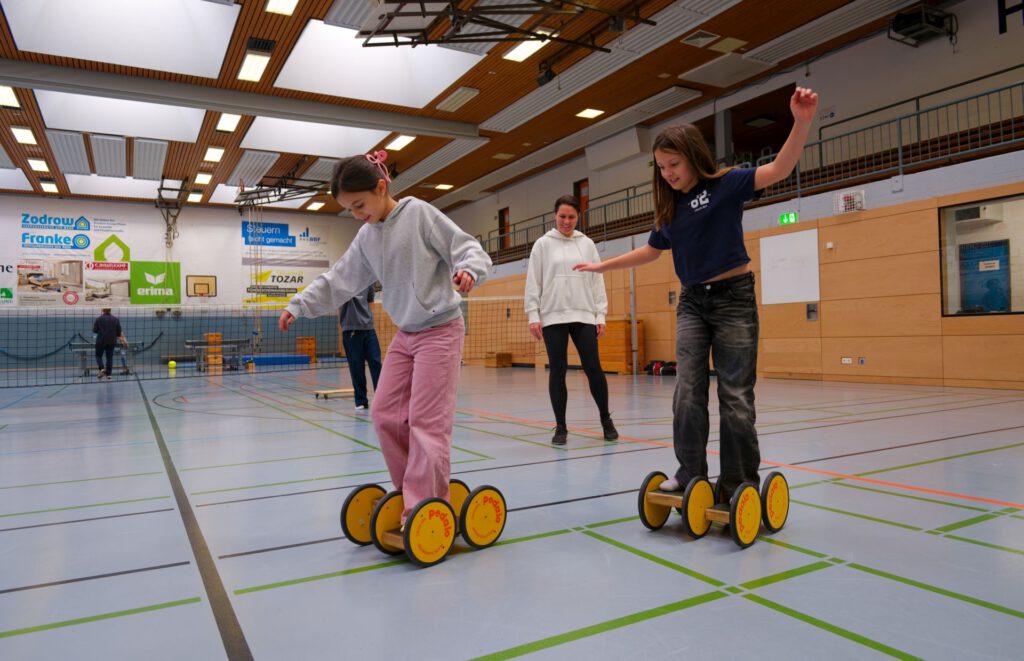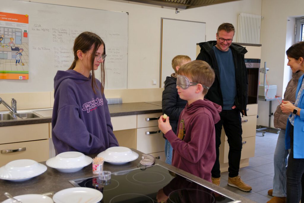 Zum Tag der offenen Tür gehört es an der VZG, dass hier im wörtlichen Sinne alle Türen offenstehen. Die Viertklässler, die voller Erwartung durch die Flure zogen, waren eingeladen bei Unterrichtseinheiten der fünften und sechsten Klassen hinzuzukommen und mitzumachen. Hier konnten die Kinder und Eltern etwas über die Schulfächer erfahren und Lehrkräfte kennenlernen – bei der Unterrichtsarbeit oder in ungezwungenen Gesprächen. Die Kinder, die ab August in die fünften Klassen kommen, probierten sich aus in Deutsch und in Fremdsprachen, lernten den Informatik-Unterricht kennen, bastelten mit Holz, experimentierten in den Naturwissenschaften, probierten Musikinstrumente aus und vieles mehr. Neben den Klassenräumen waren die auf Technik, Biologie, Physik, Chemie, Musik und den darstellenden Bereich zugeschnittenen Fachräume im Neubau ebenso geöffnet wie die Sporthalle, in der sich die kleinen Gäste unter Anleitung austoben konnten.